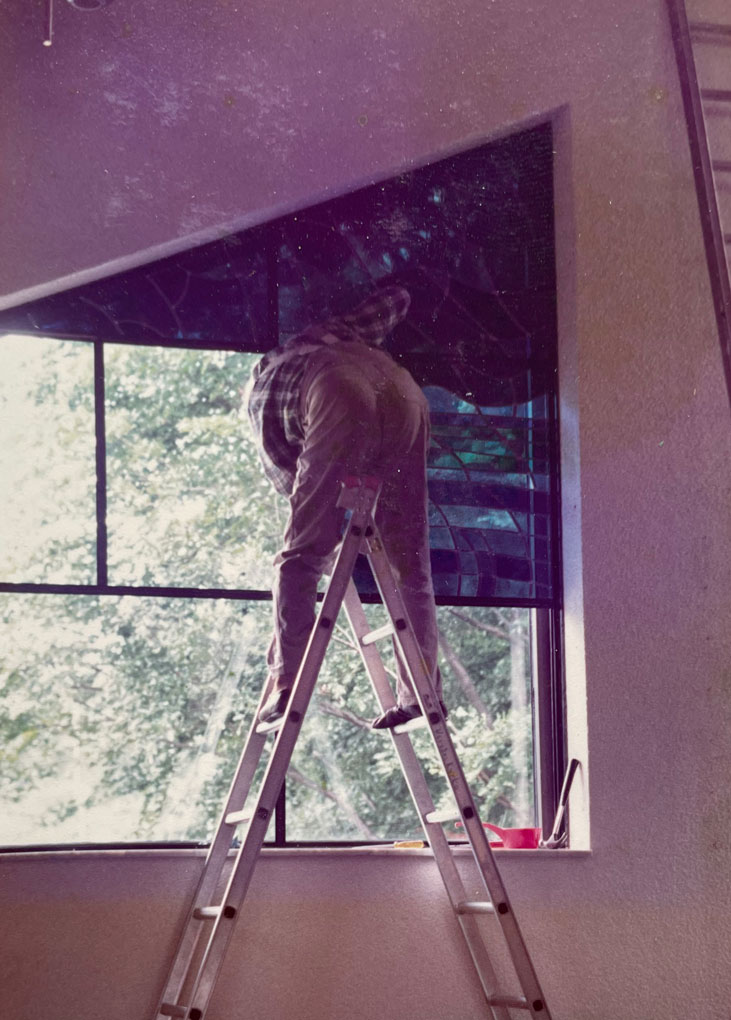 There are two large stained glass windows by Folke making a huge impact in the church; one “The River of Life” and the second “Christ on the Mountain”, both windows so vibrant, alive and moving.