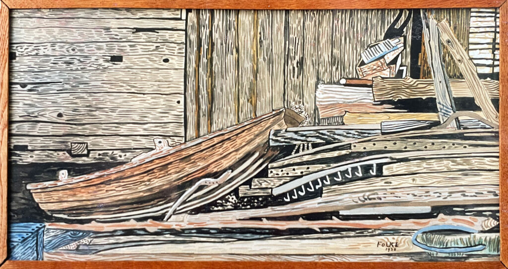 Inspired by his tutor Heinrich Campendonck painting directly from nature in the Lofoten Islands, Folke decided to follow a similar path in Sweden his mother’s country. He found the small fishing village of Böhhamn on the Baltic Coast and stayed seven months. Remarkably in this small fishing village, he met another artist, Brita Horn, who was to become his wife.