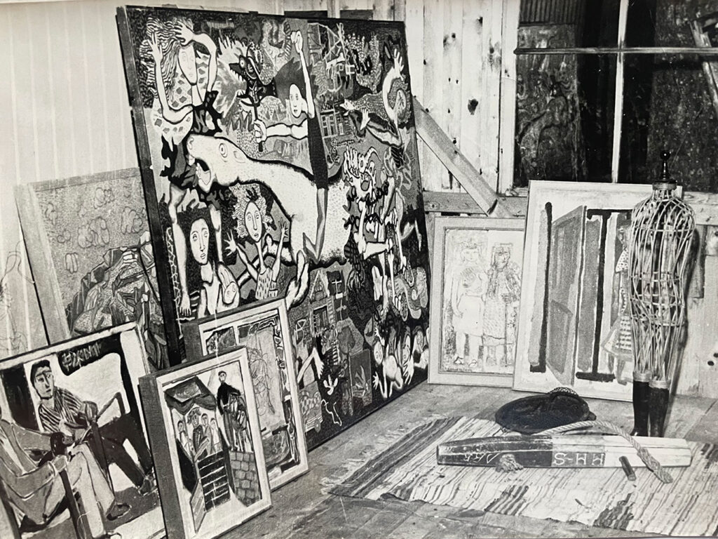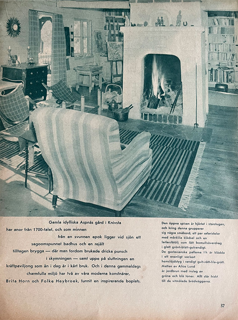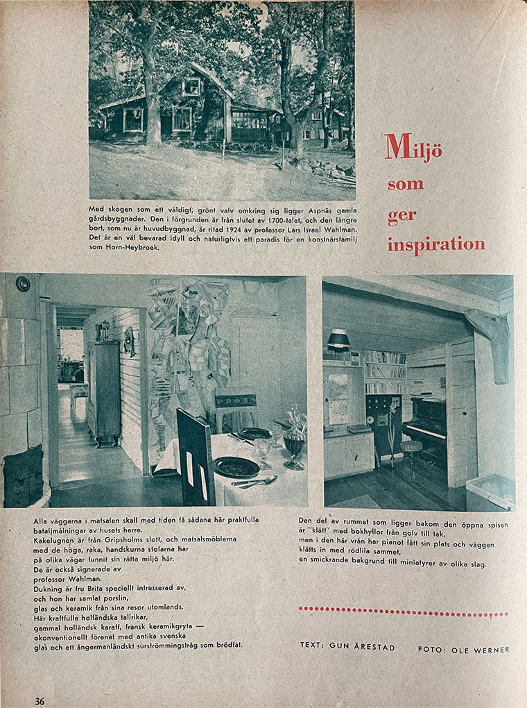 At first there was an urgent outpouring of expressive and joyful paintings as funds had to be raised to pay for their new house, their beloved Aspnäs. Later, his brushes had to be put to one side as Folke was given many varied commissions. After 1967, these projects became fewer so Folke was able to return to painting and produced many of his very best works.