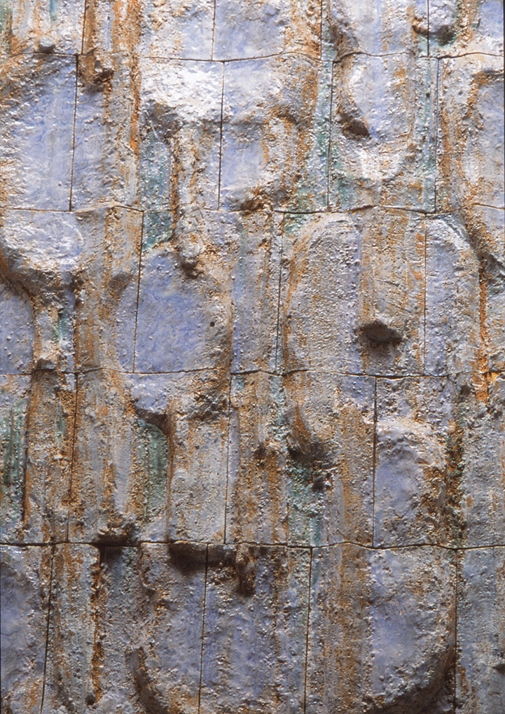 To mark the journey into the underworld, Folke oversaw the construction of an extraordinary stone wall composed of huge boulders made as a mosaic rather than stonework walling. More small niche windows set into the wall allow a glimpse of the outside world and light within.