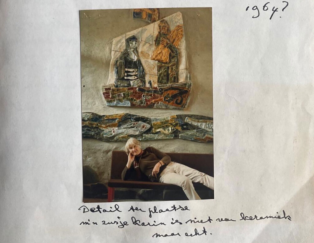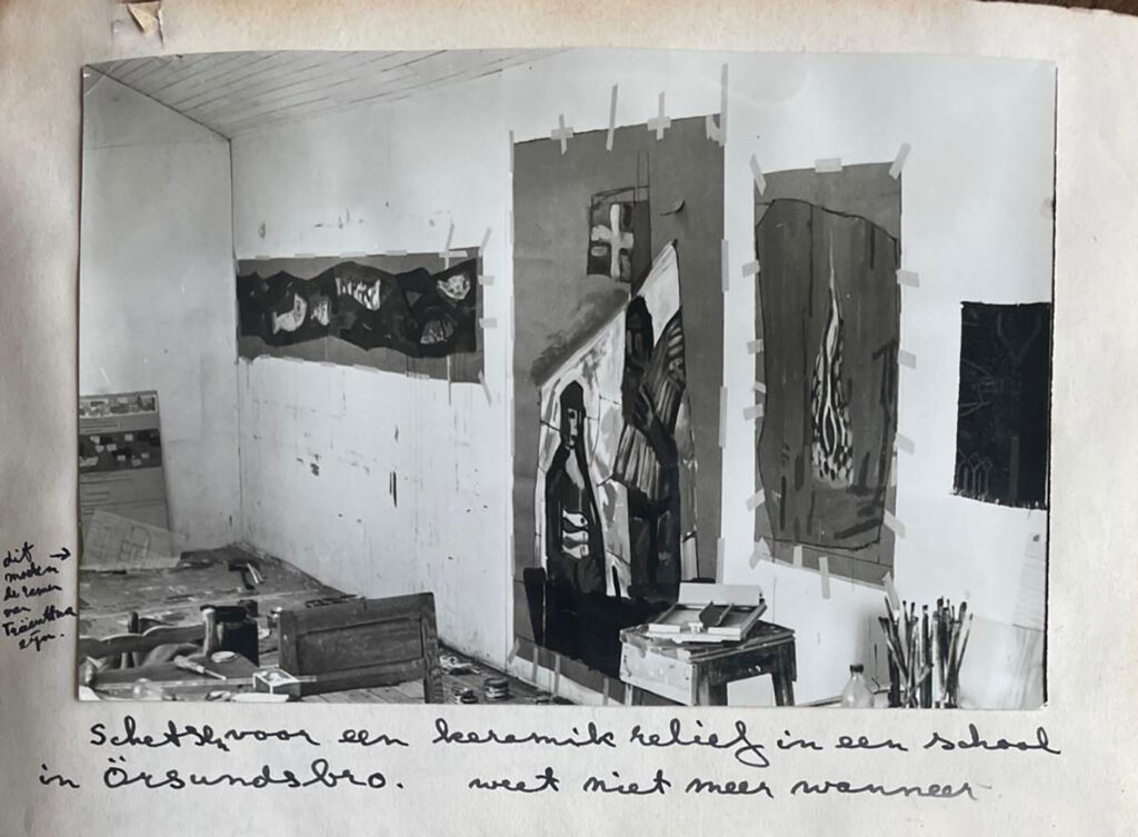 At a new modern school, a plain and rather austere building beside Lake Mälaren, close to some large grain silos, Folke produced this iridescent and joyous fired clay tile sculpture to decorate and set alight the entrance. His love of wildlife and nature is here, the elusive bittern that booms nearby, the fish from the reed filled lake and the sailing boat above. The colours are brilliant. A masterpiece to light up a gloomy entrance and fire the children’s imagination.